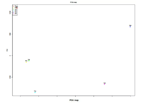 PCA分析橫坐標(biāo)代表著第一主成分,縱坐標(biāo)代表第二主成分,可以根據(jù)圖看出在第一主成分方向上樣本的距離越近,說(shuō)明它們的主成分越相近,相關(guān)性越高。