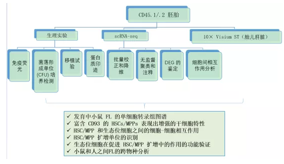 將雄性CD45.1小鼠與雌性CD45.2小鼠雜交獲得小鼠胚胎;終止妊娠后獲得的人類(lèi)胚胎;健康志愿者處收集人類(lèi)臍帶血 (CB) 樣本
