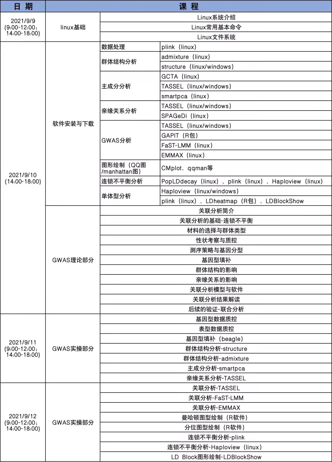 本課程主要從實(shí)踐入手,重點(diǎn)講解 GWAS 分析中用到的各種分析方法與常用分析軟件,包括群體結(jié)構(gòu)分析、主成分分析、親緣關(guān)系分析、連鎖不平衡分析、單體型分析等內(nèi)容。從原始數(shù)據(jù)開始,逐步完成分析內(nèi)容,并對(duì)分析內(nèi)容進(jìn)行整理與挖掘,將數(shù)據(jù)轉(zhuǎn)化成更直觀的圖形來展示最終的分析結(jié)果。同時(shí),課后還可反復(fù)觀看上課視頻,有問題隨時(shí)售后群中交流溝通,真正實(shí)現(xiàn)“線上學(xué)習(xí)理解,課后練習(xí)指導(dǎo),課下文檔復(fù)習(xí)”。