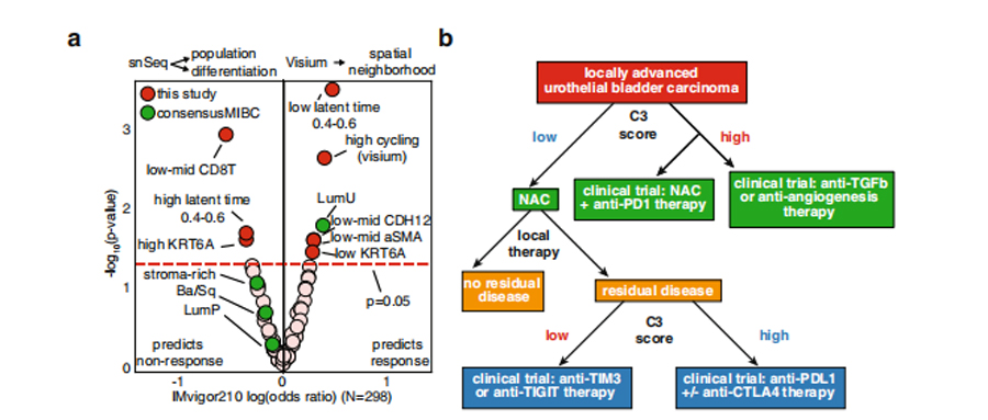 膀胱癌患者接受免疫治療后預(yù)后效果的好壞仍然是臨床上面臨的一個(gè)主要的挑戰(zhàn)。近期NC一篇文章通過(guò)單細(xì)轉(zhuǎn)錄組及空間轉(zhuǎn)錄組闡述了對(duì)膀胱癌治療具有反應(yīng)應(yīng)答的癌細(xì)胞群。獲得了在預(yù)測(cè)對(duì)免疫治療的反應(yīng)方面更優(yōu)的marker基因。有助于為患者的治療提供更理想更優(yōu)的治療方案。
