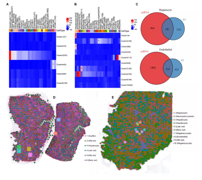本文中作者結(jié)合了單細胞RNA測序和空間轉(zhuǎn)錄組學(ST)技術(shù)的優(yōu)點,對人類從受孕后8周(PCW)到17周(PCW)的胎兒肝臟進行了分析。系統(tǒng)地鑒定了9種細胞類型,并確定了主要細胞類型的發(fā)育途徑。結(jié)果表明,人胎肝在實驗期間經(jīng)歷了血液的快速生長和遷移,并鑒定了紅系細胞發(fā)育過程中的差異表達基因和代謝變化。此外,作者還對肝病相關基因的表達進行了研究,發(fā)現(xiàn)17個已發(fā)表并與肝病相關的基因主要在巨核細胞和內(nèi)皮細胞中表達,在其他細胞類型中幾乎不表達??傊?,作者的研究結(jié)果提供了一個全面而清晰的了解人類胚胎肝臟中所有主要細胞類型的分化過程,這可能為肝臟疾病的治療和肝臟再生提供參考數(shù)據(jù)和信息。