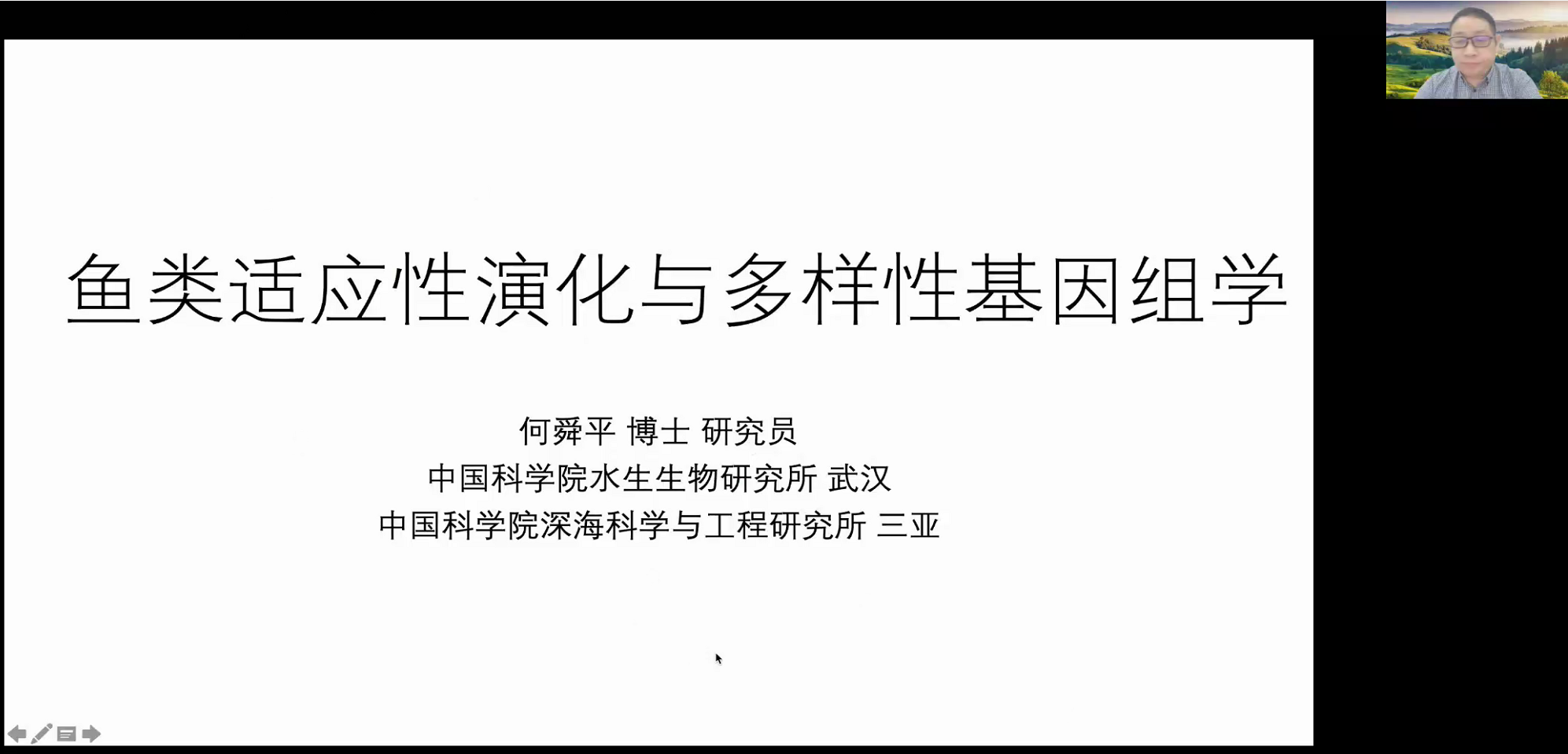 中國科學院水生生物研究所何舜平研究員充分的介紹了魚類適應性演化相關(guān)研究。研究團隊基于輻鰭魚類與四足類進化年齡、選擇壓力、表達模式以及相關(guān)的基因功能的比較分析,探討了它們對脊椎動物“登陸”事件以及矛尾魚進化的意義。揭示了早在脊椎動物祖先首次登陸之前,許多對脊椎動物登陸至關(guān)重要的肺、心臟和運動功能的遺傳調(diào)控網(wǎng)絡就已存在。進一步通過演變中重要地位的肺魚基因組解析了其肺表面活性劑關(guān)鍵基因、手指形成關(guān)鍵元件保守元件、抗抑郁相關(guān)關(guān)鍵基因。最后何老師基于萬種魚基因計劃也為我們展示了鯉科魚類適應進化的科研成果。
