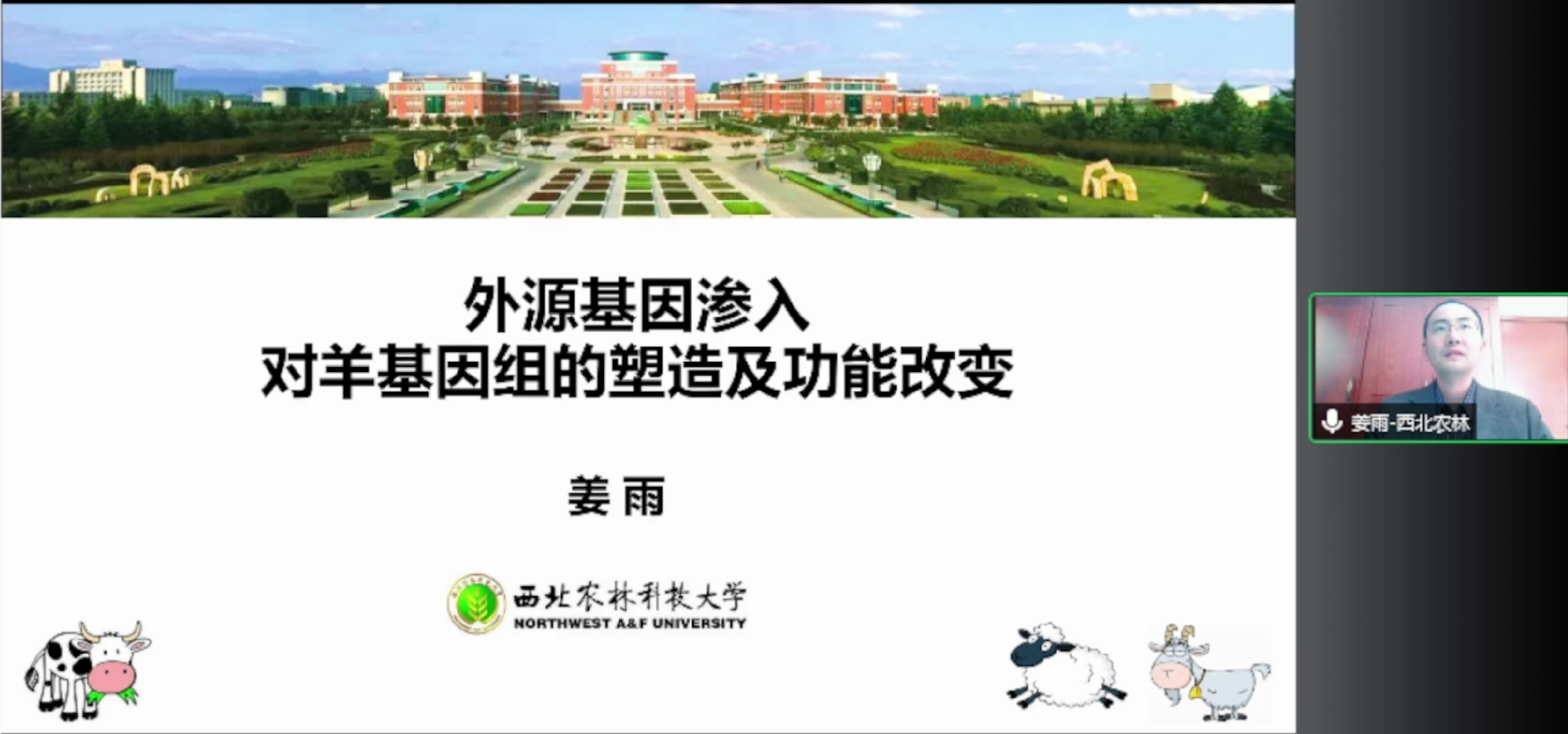 西北農(nóng)林科技大學姜雨教授報告詳述了基因滲入對羊基因組的塑造及其功能改變,其研究團隊通過代表了170多個世界綿羊品種和七個綿羊?qū)僖吧锓N的全基因組序列分析,發(fā)現(xiàn)平均每只家養(yǎng)綿羊的基因組序列分別來自于伊朗的野生摩佛倫羊、東方盤羊和東亞盤羊的雜交滲入。說明起源于野生物種并滲入家養(yǎng)綿羊的獨特單倍型在表型多樣性和綿羊本地化適應中起著重要作用。并發(fā)現(xiàn)綿羊的大角、小角、無角以及耳朵大小性狀相關(guān)基因。最后表示,從多個近緣野生物種、馴化祖先種的不同群體之間發(fā)生的滲入事件持續(xù)發(fā)生,遠比想象的復雜,需要結(jié)合歷史和地理的遷徙知識討論。滲入單倍型在多種功能上發(fā)揮作用,其與已存在變異、新發(fā)突變通過快速組合,適應新的環(huán)境。