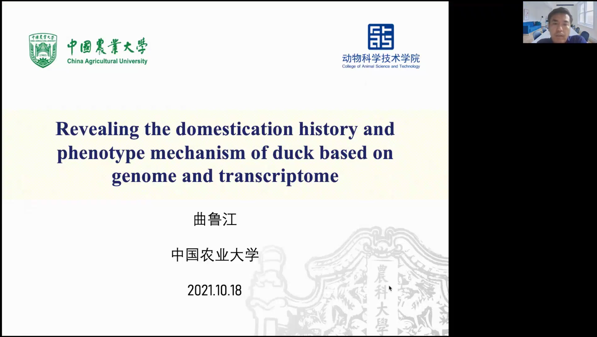 中國農(nóng)業(yè)大學曲魯江教授詳述了鴨的馴化歷史和表型機制,研究團隊利用野生群體綠頭鴨和廣泛的家鴨遺傳資源,揭示了家鴨的馴化時間發(fā)生在距今 2200年前,發(fā)現(xiàn)與大腦、神經(jīng)發(fā)育以及脂質(zhì)代謝相關(guān)的基因在馴化過程中經(jīng)歷了高強度的選擇。并尋找到鴨白羽性狀的原因突變位點以及潛在的與肉質(zhì)、視覺、飛行等表型相關(guān)的候選基因、蛋肉鴨之間的差異基因,這些差異基因與免疫和繁殖性狀有緊密的關(guān)聯(lián)。根據(jù)表達數(shù)據(jù)識別的性別偏向表達基因在馴化過程中具有獨特的進化特性,可能對應著馴化過程中性選擇和遺傳約束的動態(tài)變化。