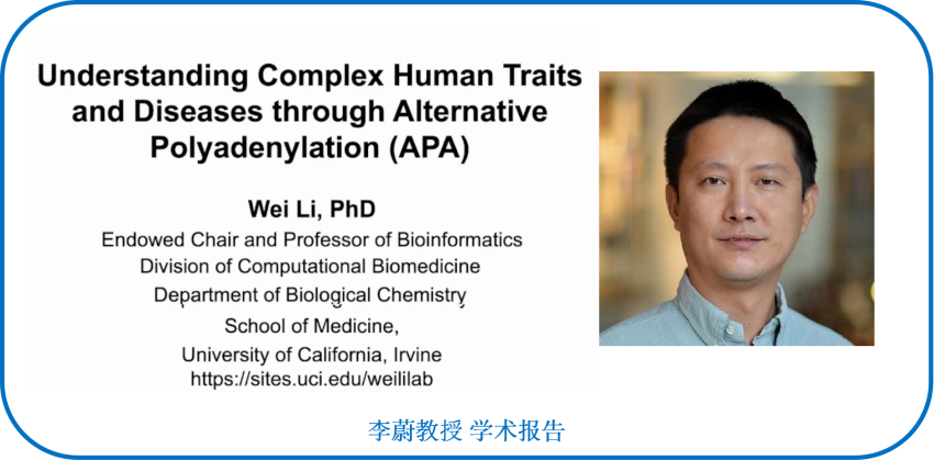 貝勒醫(yī)學(xué)院李蔚教授介紹了Understanding Complex Human Traits and Diseases through Alternative Polyadenylation (APA)。在該項(xiàng)研究中,建立了3’UTR可變多聚腺苷酸化(APA)數(shù)量性狀位點(diǎn)(3’aQTLs)的概念,3’aQTLs圖譜有望將APA作為一種新興的重要分子表型來(lái)解釋大部分GWAS(全基因組關(guān)聯(lián)研究)風(fēng)險(xiǎn)SNPs,從而為APA和APA相關(guān)易感基因在人類特征和疾病中的遺傳基礎(chǔ)提供重要的生物學(xué)見(jiàn)解。