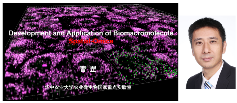 聆聽完湯老師的報告是不是意猶未盡,接下來第二位出場報告嘉賓是華中農(nóng)業(yè)大學楚天學者特聘教授,曹罡教授,曹老師的報告題目是:Development and Application of Single cell Biomacromolecule Spatail-Omics。。曹老師團隊開發(fā)了一系列的單細胞生物大分子原位組學檢測新技術,包括(單細胞)三維基因組學、單細胞原位測序技術、新型中低通量單分子FISH技術、蛋白互作網(wǎng)絡及其高通量空間定位技術和結合神經(jīng)環(huán)路的單細胞測序技術。同時,并將這些技術運用到神經(jīng)免疫學與病原感染、腫瘤等疾病的發(fā)生發(fā)展及其檢測研究中,極大的拓展了單細胞生物大分子空間組學的發(fā)展與應用。