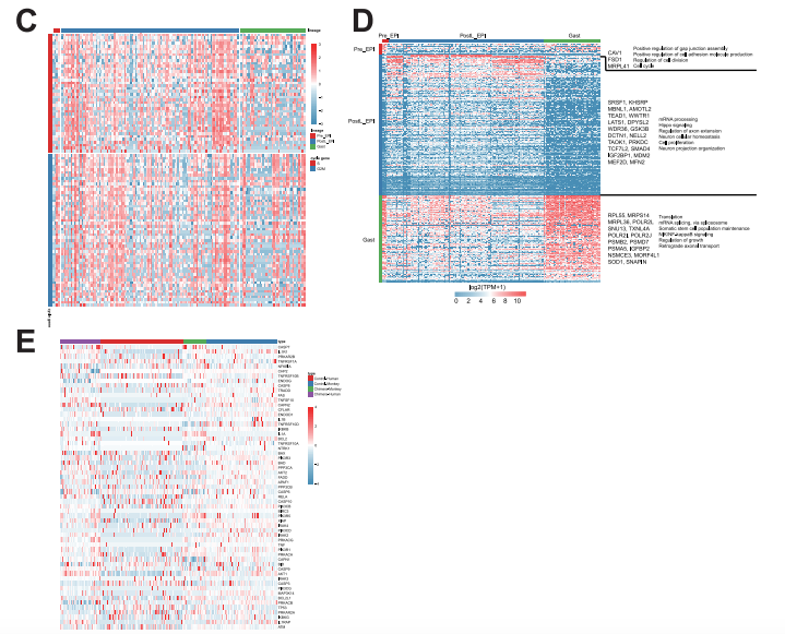 通過運行Seurat的“FindAllMarkers”和“FindClusters”功能(p <0.01)來鑒定獨特的cluster 特異性表達基因。K-近鄰算法SPRING(Weinreb et al., 2018)用于軌跡分析,以集成數(shù)據(jù)、2000