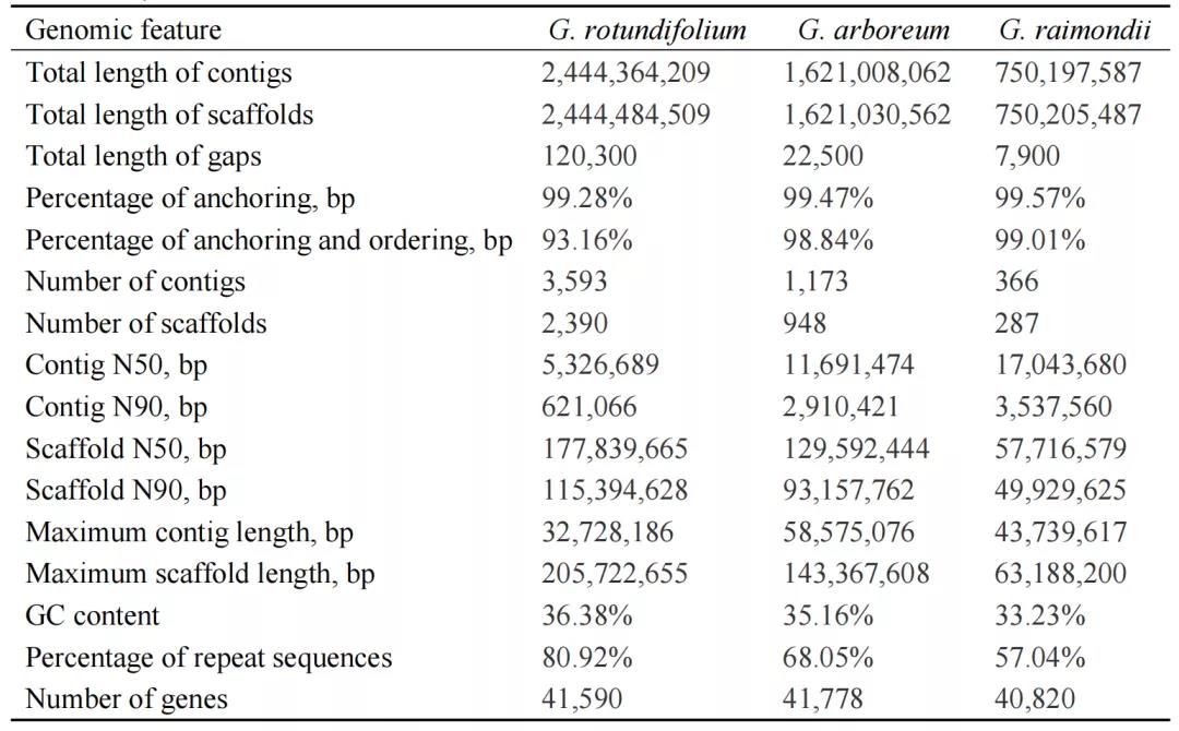 1. 圓葉棉、亞洲棉、雷蒙德氏棉基因組組裝注釋