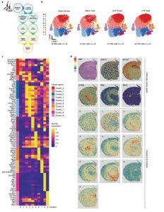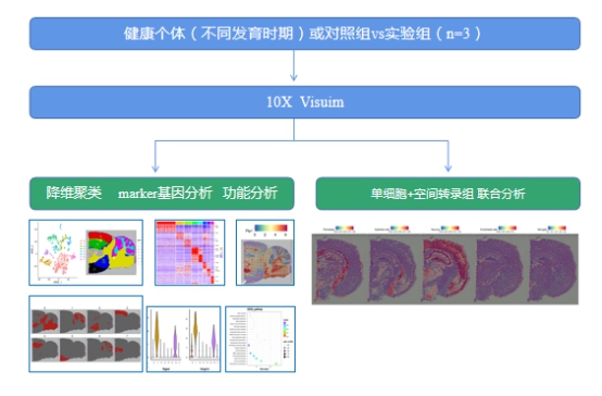 大腦是一個具有精密組織結構的重要器官。對于大腦結構-功能的關系、發(fā)育過程中大腦皮層以及退行性神經疾病領域的研究,空間轉錄組可以揭示更多的信息。單細胞和空間轉錄組結合可以將關注的細胞類型及亞型√確的錨定到空間位置上,解析不同功能區(qū)域與細胞類型及亞型的關聯性。