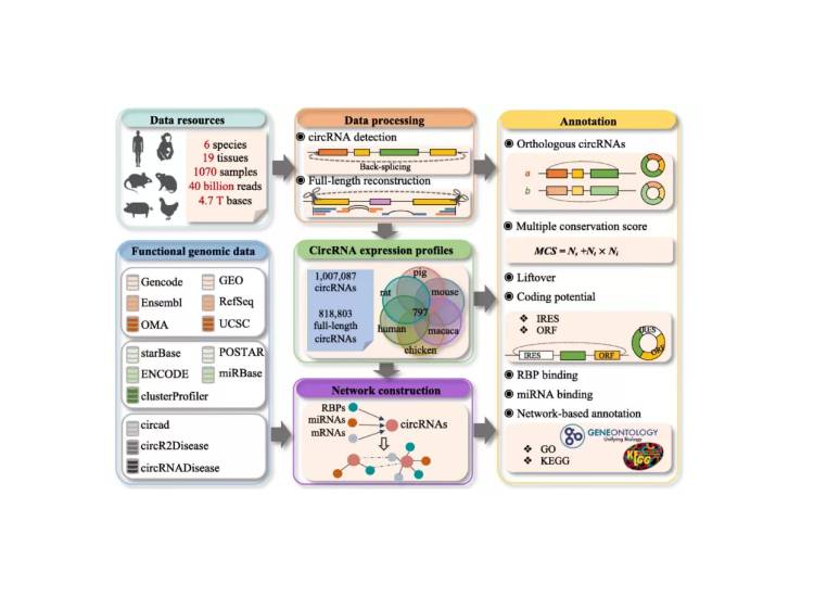 現(xiàn)有的環(huán)狀RNA (circRNA)數(shù)據(jù)庫(kù)已經(jīng)成為轉(zhuǎn)錄組學(xué)的基礎(chǔ)。但是目前常用的方法對(duì)于深度挖掘候選circRNA仍有限?;谶@種情況,趙方慶教授團(tuán)隊(duì)2020年在genome biology雜志發(fā)表了circAtlas數(shù)據(jù)庫(kù)的文章(CircAtlas: an integrated resource of one million highly accurate circular RNAs from 1070 vertebrate transcriptomes)。circAtlas數(shù)據(jù)庫(kù)基于從六個(gè)脊椎動(dòng)物物種(人類,獼猴,小鼠,大鼠,豬和雞)的19個(gè)正常組織中收集的1070個(gè)RNA-seq樣本數(shù)據(jù)匯總了環(huán)狀RNA相關(guān)信息。該數(shù)據(jù)庫(kù)包含1,007,087個(gè)高度可靠的circRNA,其中81.3%以上已被組裝成全長(zhǎng)序列。數(shù)據(jù)庫(kù)終不僅概述了它們的表達(dá)模式、保守性和功能注釋等信息,還描述了一種新的多重保護(hù)評(píng)分、共表達(dá)和調(diào)控網(wǎng)絡(luò),用于circRNA注釋和排序。