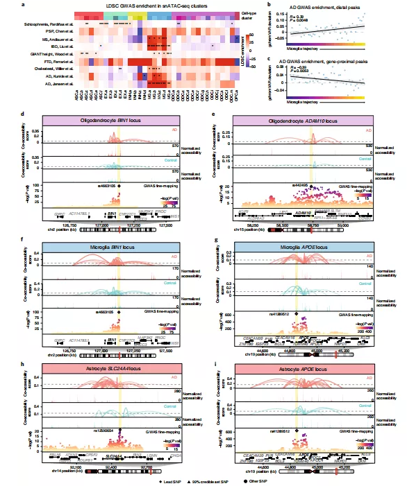 圖7.阿爾茨海默癥患者腦內(nèi)GWAS基因座的細(xì)胞類型特異性調(diào)控格局