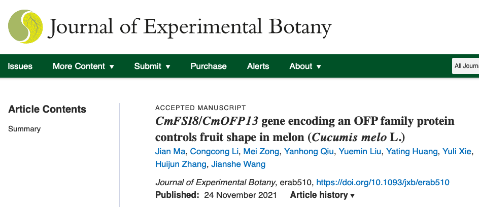 [6] Ma J, Li C, Zong M, et al. CmFSI8/CmOFP13 gene encoding an OFP family protein controls fruit shape in melon (Cucumis melo L.). J Exp Bot. 2021 Nov 24:erab510.