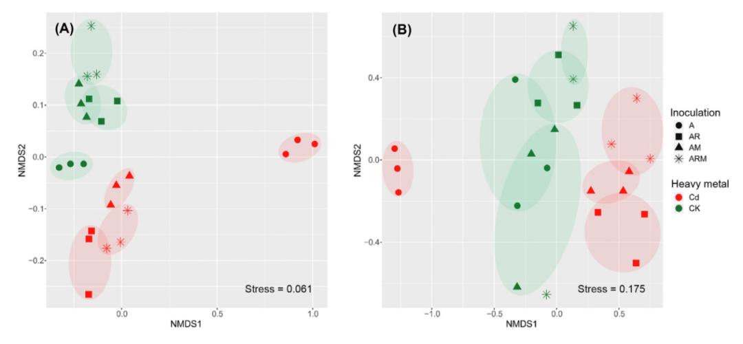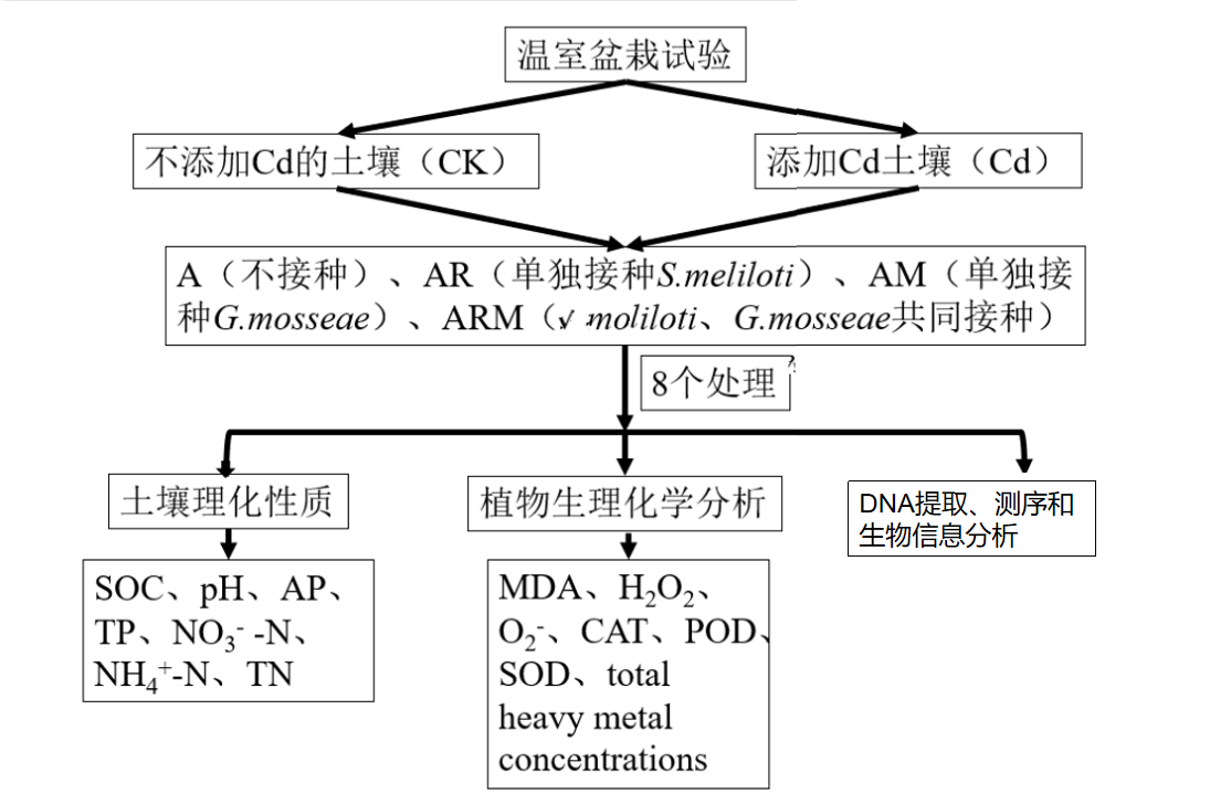 根瘤菌和叢枝菌根真菌(AMF)是重要的共生微生物,對(duì)生長(zhǎng)在金屬污染土壤中的植物有利。然而,目前仍不清楚接種的微生物如何影響根際微生物群落,或者根際微生物群落的后續(xù)變化是否有助于提高金屬脅迫下的植物抗性。