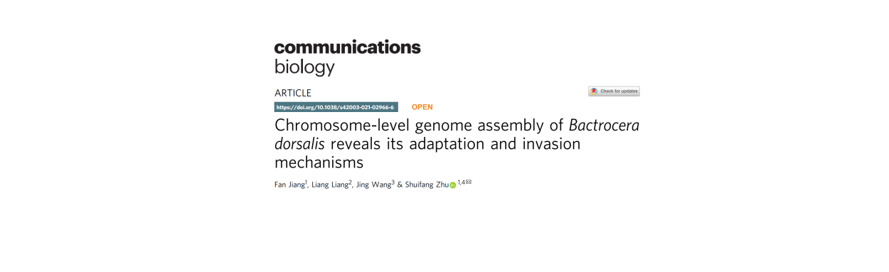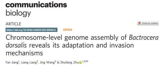 橘小實蠅(Bactrocera dorsalis)是世界重大入侵害蟲,可危害250余種果蔬,被列入我國首批重點管理外來入侵物種名錄。橘小實蠅宿主廣且定殖傳播力強,與其他實蠅類害蟲競爭易成為優(yōu)勢種,一旦傳入非疫區(qū)將造成巨大經(jīng)濟損失,嚴(yán)重威脅生物安全。目前橘小實蠅已在全球六大洲至少65個國家造成危害,而其基因組信息的缺乏使得相關(guān)防控研究難以進(jìn)一步開展。