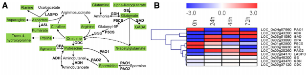 研究結(jié)果:RNA測序和代謝組學技術(shù),使用定量實時PCR驗證數(shù)據(jù)。當水稻受到C.?suppressalis幼蟲損傷時,有4,729個基因和151個代謝物受到不同的調(diào)節(jié)。進一步的分析表明,防御相關(guān)的植物激素,轉(zhuǎn)錄因子,莽草酸介導和萜類化合物相關(guān)的次生代謝被激活,而生長相關(guān)的同行被抑制C.?suppressalis喂養(yǎng)?;罨姆烙赡芰績Υ婊衔锶鐔翁堑姆纸獯x促進,這同時導致參與水稻植物防御反應的代謝物的水平增加??杀容^的分析顯示了轉(zhuǎn)錄物模式和代謝物譜之間的對應。