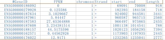 如果表達量文件包含新預(yù)測的基因,還需要補充新基因(已知基因可選填)的Chromosome(染色體號)、Strand(正負鏈信息)、start(起始位置)、end(終止位置)、length(長度)。