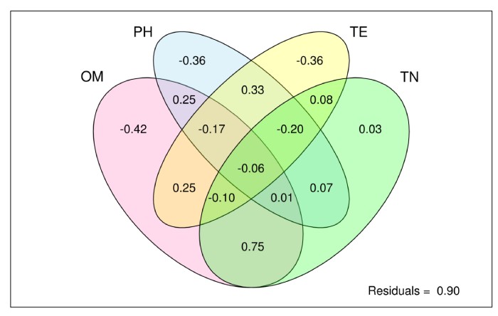 VPA分析(方差分解分析):VPA,全稱Variance Partitioning Analysis,中文稱為方差分解分析,該分析的目的是確定指定的環(huán)境因子對群落結(jié)構(gòu)變化的解釋比例。通常在CCA/RDA的排序分析方法可以得到所有參與分析的環(huán)境因子對群落變化的解釋比例。使用R語言vegan包(version:2.3-0),varpart函數(shù)進(jìn)行分析;分析前首先需要對環(huán)境因子進(jìn)行一個分類,一般支持2-4類,默認(rèn)使用大于等于2個環(huán)境因子進(jìn)行此分析。