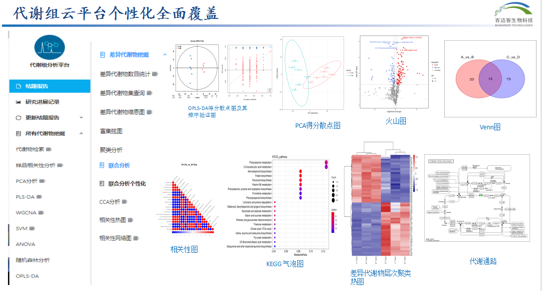 百邁客云平臺(tái)依托于多年項(xiàng)目分析經(jīng)驗(yàn),優(yōu)化云服務(wù)體系,功能全面升級(jí),搭建了覆蓋數(shù)據(jù)處理、圖片美化、結(jié)果解讀、應(yīng)用介紹的個(gè)性化分析平臺(tái),不需要和公司反反復(fù)復(fù)的確認(rèn),也不需要幾周的長時(shí)間等待,通過網(wǎng)頁就可以自主完成轉(zhuǎn)錄組代謝組聯(lián)合分析數(shù)據(jù)的挖掘,把時(shí)間握在自己手中。個(gè)性化分析功能+圖片交互,所有需求一網(wǎng)打盡!5分鐘急速周期,分析結(jié)果觸手可得!更有多種聯(lián)合分析等你來拿,轉(zhuǎn)錄,蛋白,代謝,微生物任意搭配,兩兩,三三多種組合任你選!幾步操作輕松搞定,無限次免費(fèi)分析!