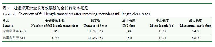 球囊菌菌株由福建農(nóng)林大學(xué)動物科學(xué)學(xué)院(蜂學(xué)學(xué)院)蜜蜂保護(hù)實(shí)驗(yàn)室分離、純化和保存。純化得到的純凈菌絲樣品和孢子樣品經(jīng)液氮速凍后迅速轉(zhuǎn)移到-80℃超低溫冰箱保存?zhèn)溆?。利用納米孔長讀段測序技術(shù)對球囊菌的純化菌絲(Aam)和純化孢子(Aas)分別進(jìn)行測序,將高質(zhì)量的三代測序數(shù)據(jù)混合后用于構(gòu)建全長轉(zhuǎn)錄組,并通過比對主流數(shù)據(jù)庫進(jìn)行功能注釋,同時(shí)對球囊菌的長鏈非編碼RNA(longnon-codingRNA,lncRNA)進(jìn)行鑒定和分析。