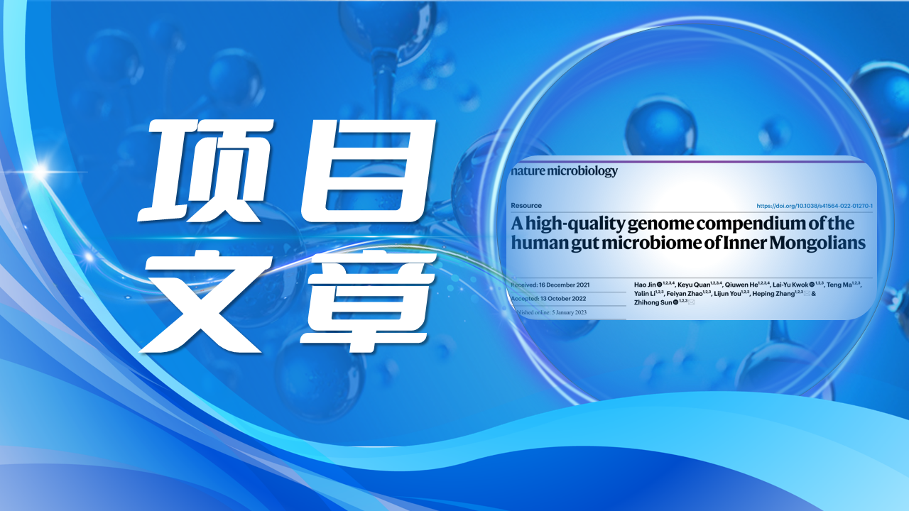 2023年1月5日,內(nèi)蒙古農(nóng)學(xué)大學(xué)張和平教授和孫志宏研究員團(tuán)隊(duì)在微生物領(lǐng)域國際期刊《Nature Microbiology》(IF:30.964)上發(fā)表了題為“A high-quality genome compendium of the human gut microbiome of Inner Mongolians(“內(nèi)蒙古人腸道菌群的高質(zhì)量基因組簡編”)的研究論文。該研究基于一項(xiàng)益生菌(Probio-M8)發(fā)酵乳人群干預(yù)實(shí)驗(yàn),采用混合長讀(ONT)和短讀HiSeq測序來表征60名內(nèi)蒙古人的糞便菌群,基于分箱的宏基因組分析策略和方法,構(gòu)建了內(nèi)蒙古人腸道高質(zhì)量基因組數(shù)據(jù)庫(IMGG)。百邁客為該研究提供了ONT宏基因組測序服務(wù)。