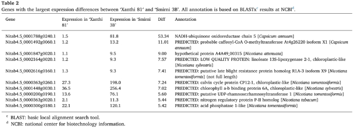 1.2. “ Xanthi 81”和“ Smirni 3B”中的差異表達(FPKM> 1)基因