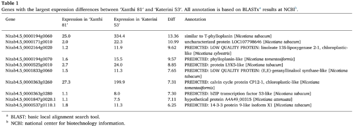 1.1“ Xanthi 81”和“ Katerini 53”中的差異表達(FPKM> 1)
