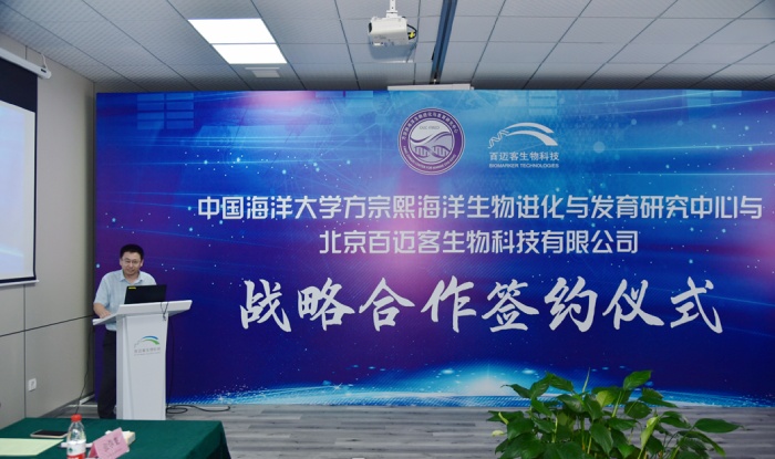 隨后由中國(guó)海洋大學(xué)董波教授發(fā)表致辭,董波教授介紹了中國(guó)海洋大學(xué)方宗熙海洋生物進(jìn)化與發(fā)育研究中心近年海洋模式動(dòng)物研究進(jìn)展及重點(diǎn)科研攻關(guān)成果,同時(shí)表示:期望依托雙方的優(yōu)質(zhì)資源和創(chuàng)新性的技術(shù)經(jīng)驗(yàn)實(shí)現(xiàn)價(jià)值共享,并通過(guò)持續(xù)的加強(qiáng)交流合作、協(xié)同發(fā)展。
