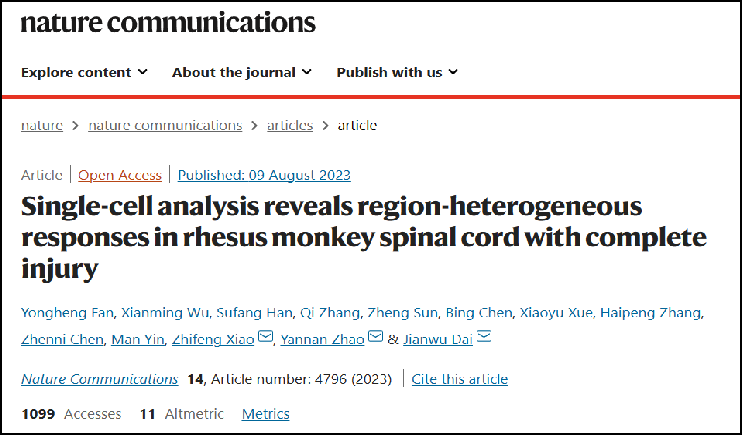 單細(xì)胞技術(shù)解析靈長(zhǎng)類(lèi)脊髓損傷修復(fù)機(jī)制