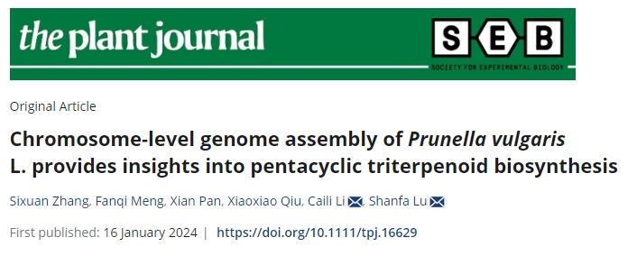 2024年1月16日,The Plant?Journal上線了一篇關于夏枯草基因組的研究論文,“Chromosome-level genome assembly of?Prunella vulgaris?L. provides insights into pentacyclic triterpenoid biosynthesis”,報道了組裝到染色體水平的夏枯草基因組,為進一步闡明五環(huán)三萜的生物合成機制奠定了基礎。