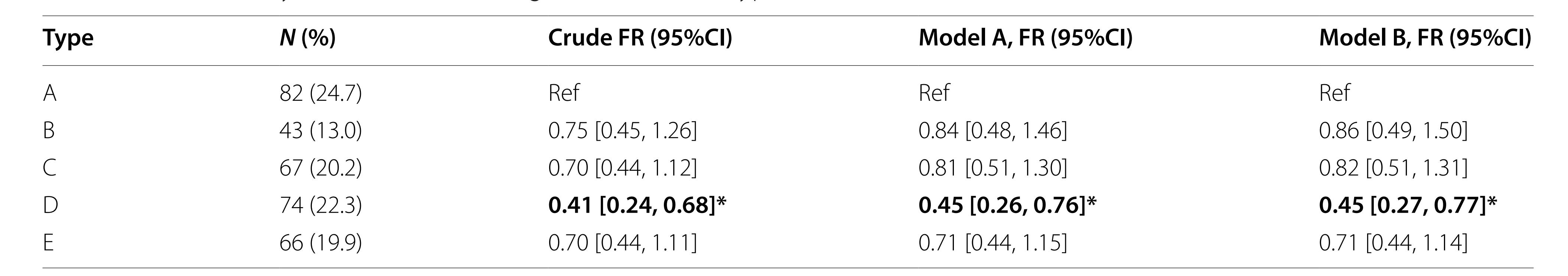 在調(diào)整了潛在的混雜因素后,與陰道微生物群A型的女性相比,D型微生物組的生育能力降低了55%。無(wú)論TTP是按月還是按月經(jīng)周期決定,這種相關(guān)性都很強(qiáng)。與A型相比,具有B、C和E型陰道微生物組的婦女的生育能力傾向較低。