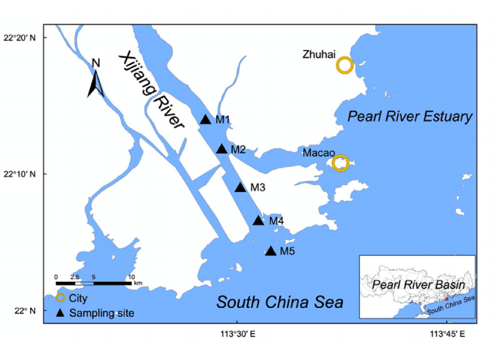 - 與鹽度相似,隨著采樣點(diǎn)從M1到M5,水中電導(dǎo)率、TDS和NH4+濃度升高,而TN、NO3?、NO2?和TP濃度降低;