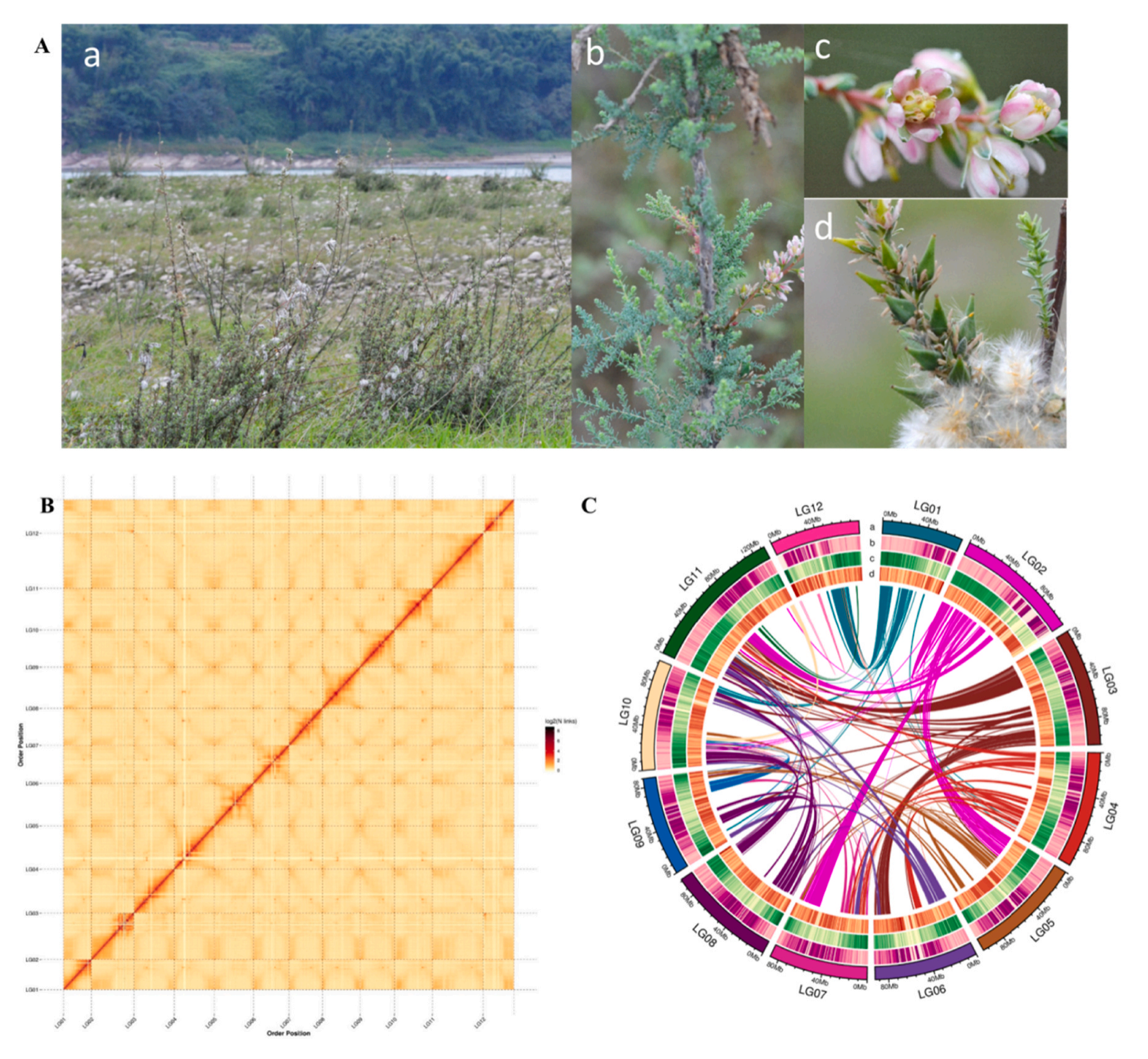 近日,由西南大學(xué)、重慶市林業(yè)科學(xué)研究院、重慶城市管理職業(yè)學(xué)院團(tuán)隊(duì)合作完成的項(xiàng)目成果《?Chromosome-scale?genome?assembly?clarifies?the?mechanism?of?flooding?tolerance?and?evolutionary?history?of?Myricaria?laxiflora》在《科學(xué)引文索引》(SCI)一區(qū)TOP期刊上“Industrial?Crops?&?Products”發(fā)表。該研究報(bào)道了水柏枝屬染色體水平基因組,并從形態(tài)學(xué)、生理學(xué)、比較基因組等多個(gè)角度揭示了疏花水柏枝在淹沒(méi)的環(huán)境適應(yīng)性和遺傳機(jī)制,為檉柳科物種種質(zhì)資源的保護(hù)和資源的開發(fā)利用提供了指導(dǎo)。