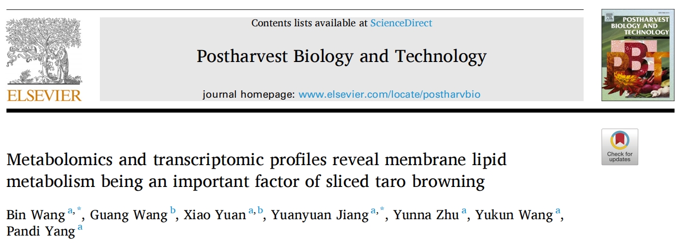 2024年5月9日,韶關(guān)學(xué)院和華南農(nóng)業(yè)大學(xué)在國際學(xué)術(shù)期刊?Postharvest Biology and Technology?發(fā)表一項重要研究成果,題為:Metabolomics and transcriptomic profiles reveal membrane lipid metabolism being an important factor of sliced taro browning。該研究通過植物廣靶代謝組和轉(zhuǎn)錄組分析研究了芋頭片在冷藏過程中的褐變發(fā)展及潛在的褐變機(jī)制。這項研究有助于我們了解鮮切食品的褐變機(jī)制,為未來的研究和減輕冷藏條件下切片芋頭褐變的潛在策略提供寶貴的見解。