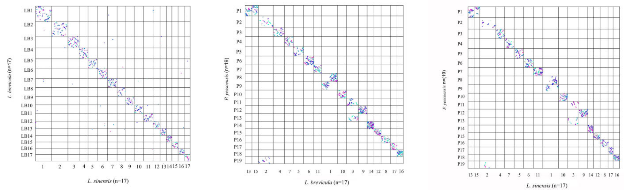 圖2-短濱螺、中華濱螺和蝦夷扇貝兩兩間宏觀共線性散點圖