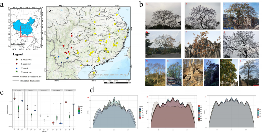 無患子屬樹種不僅是天然洗滌品、生物柴油等林業(yè)生物經濟產業(yè)的重要原料,也是生態(tài)修復優(yōu)選樹種。本研究構建了無患子屬全基因組多樣性圖譜,為后續(xù)的分子輔助育種、種質資源保護與產業(yè)化利用打開了新局面!