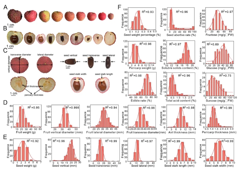 荔枝是東南亞一種重要的經(jīng)濟(jì)水果作物,以其獨(dú)特的風(fēng)味和營養(yǎng)價值而聞名。荔枝起源于中國云南省,具有2000多年的栽培史,由于長期的自然選擇和在不同氣候及種植條件下的人工育種,孕育了豐富的種質(zhì)資源,可用于性狀持續(xù)的遺傳改良。至今已有許多工作是從表型性狀來研究和評估荔枝的多樣性,然而,相應(yīng)的遺傳變異未被充分的挖掘利用,尤其是能夠代表大量遺傳信息的核心種質(zhì),群體遺傳結(jié)構(gòu)不清晰,許多重要育種性狀如果實(shí)大小、風(fēng)味、種子大小等調(diào)控果實(shí)品質(zhì)的遺傳基礎(chǔ)仍有待深入探索。
