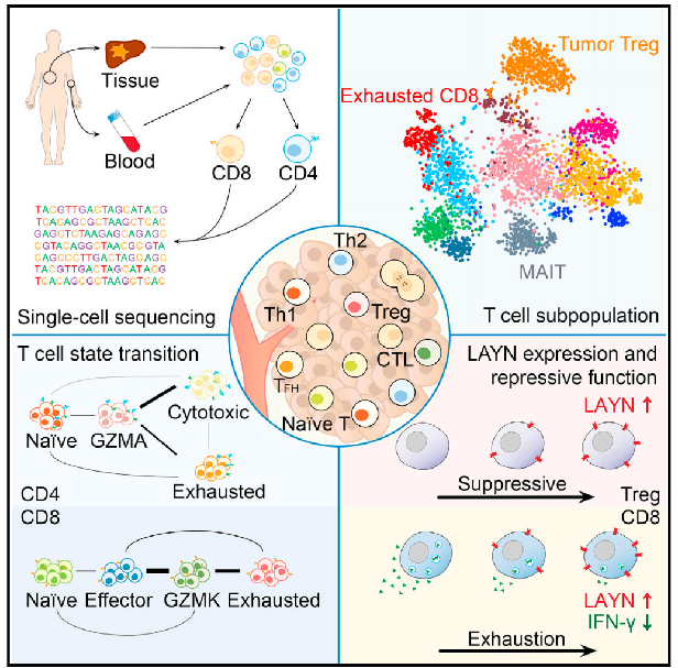 2017年,張澤民院士研究組,通過大規(guī)模單細(xì)胞測序技術(shù)對肝癌相關(guān)T淋巴細(xì)胞進(jìn)行分析,首次在單細(xì)胞水平上描繪肝癌微環(huán)境中免疫細(xì)胞圖譜,發(fā)現(xiàn)了肝癌免疫療法的潛在靶點(diǎn),也為我們從多角度系統(tǒng)性理解肝癌T淋巴細(xì)胞特征奠定了基礎(chǔ)。(2017,Cell,Landscape of Infiltrating T Cells in Liver Cancer Revealed by Single-Cell Sequencing)