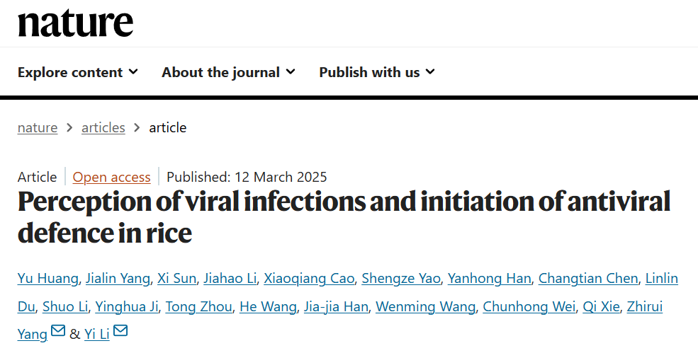 近日,北京大學李毅研究團隊聯(lián)合福建農林大學等多個實驗室在Nature上發(fā)表了題為“Perception?of?viral?infections?and?initiation?of?antiviral?defence?in?rice”的研究論文,揭示了水稻感知病毒侵染并啟動抗病毒免疫反應的分子機制。百邁客生物為該研究提供了轉錄組測序服務!