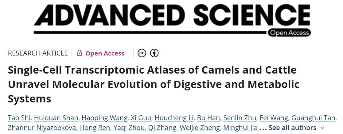 近期,西北農林大學姜雨教授和奧胡斯大學房靈昭教授等聯(lián)合團隊在國際權威期刊Advanced?Science發(fā)表研究成果:“Single-Cell?Transcriptomic?Atlases?of?Camels?and?Cattle?Unravel?Molecular?Evolution?of?Digestive?and?Metabolic?Systems”。