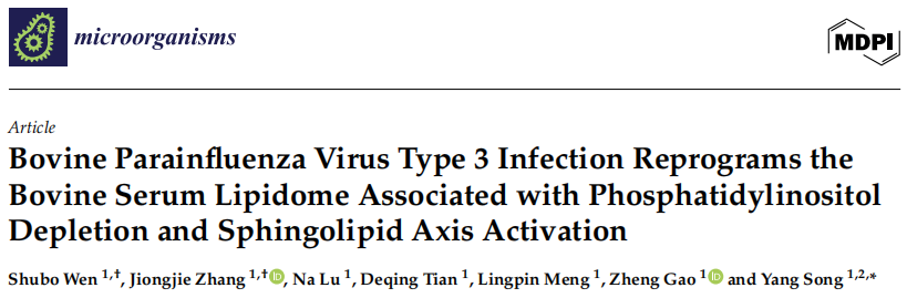 2026年1月,中國內(nèi)蒙古民族大學(xué)動物科學(xué)與技術(shù)學(xué)院等在期刊Microorganisms上發(fā)表最新研究成果:Bovine?Parainfluenza?Virus?Type?3?Infection?Reprograms?the?Bovine?Serum?Lipidome?Associated?with?Phosphatidylinositol?Depletion?and?Sphingolipid?Axis?Activation。百邁客生物為該研究提供了非靶代謝組檢測和分析服服務(wù)!