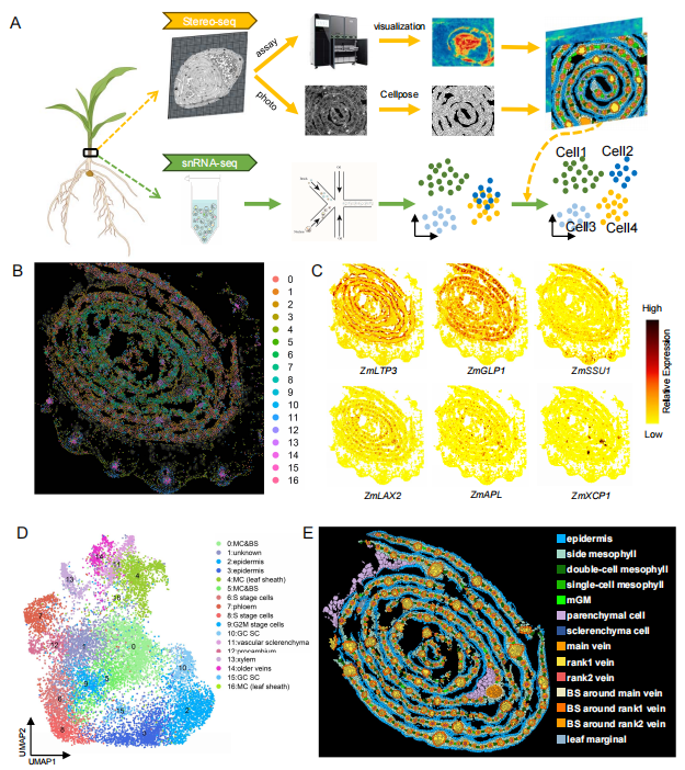 單細(xì)胞核&空間轉(zhuǎn)錄組:12日齡玉米幼苗基部莖段葉原基(P3-P6),通過Cellpose 2.0識別細(xì)胞壁輪廓,提取14,037個(gè)空間單細(xì)胞轉(zhuǎn)錄組