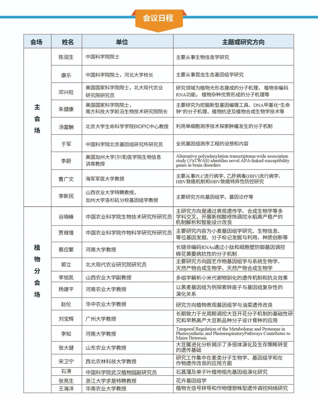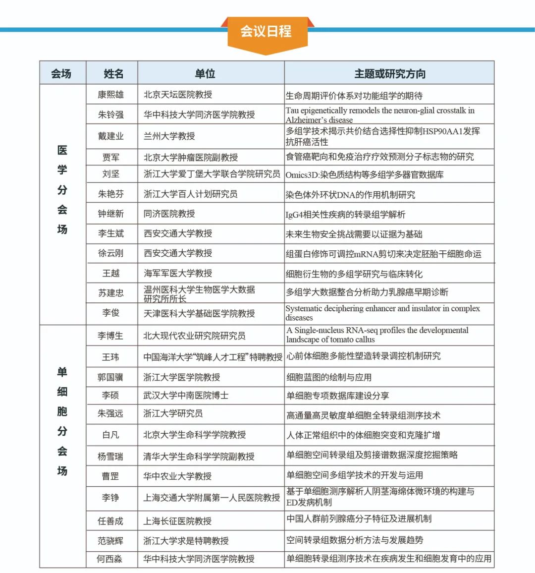 22日報道,23日主會場,24日五個分會場(植物功能基因組學(xué)研究會場、動物多組學(xué)應(yīng)用研究會場、微生物質(zhì)譜多組學(xué)研究會場、醫(yī)學(xué)多組學(xué)精準診療應(yīng)用研究會場、時空多組學(xué)技術(shù)發(fā)展及應(yīng)用會場)并行,25-27日為期刊講座及培訓(xùn)課程。
