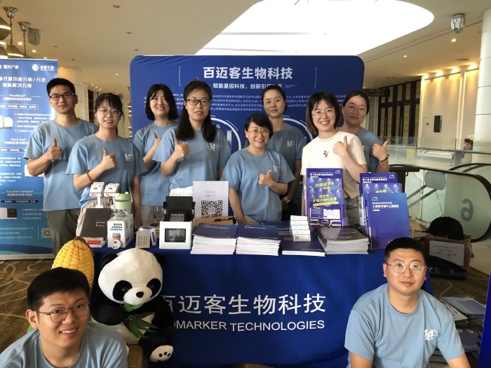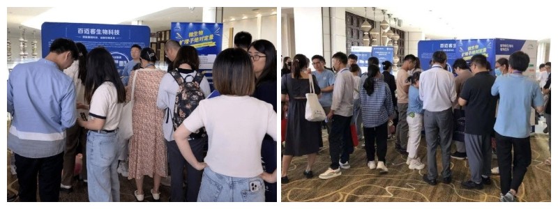 展會期間百邁客發(fā)揚以科研為中心的優(yōu)秀企業(yè)精神,全程設(shè)立展位,展示了全方位微生物組研究相關(guān)組學(xué)產(chǎn)品,包括前沿組學(xué)工具?絕對定量微生物組學(xué)測序,高數(shù)據(jù)量全長多樣性研究,?長度長宏基因組學(xué),以及全方位探討生物學(xué)問題的?動植物-微生物互作多組學(xué)聯(lián)合分析應(yīng)用產(chǎn)品,與前來參會的研究學(xué)者熱烈討論了地質(zhì)微生物組學(xué)現(xiàn)有研究問題與發(fā)展前景,吸引了大量優(yōu)秀學(xué)者駐留探討。展位現(xiàn)場火爆,大家對不同的產(chǎn)品提出了不同的問題,現(xiàn)場的工作人員都做了詳細的解答和交流。