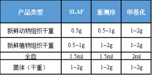 建議送樣量適用于95%的物種組織,少部分組織因胞內(nèi)核酸量較低,需適當(dāng)增加送樣量,比如植物果實(shí)、根等。送樣量過(guò)少或過(guò)多均不利于提取實(shí)驗(yàn),下限為建議量的一半,上限為建議量的3倍。隨著技術(shù)發(fā)展,當(dāng)前大部分產(chǎn)品建庫(kù)起始量較低,不需要太多組織,采樣量過(guò)多反而會(huì)造成速凍不徹底、提取取樣困難、凍融降解等危險(xiǎn)。