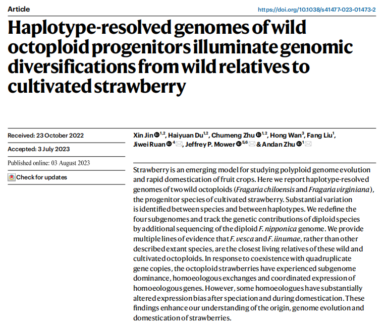 該研究報(bào)道了兩個(gè)八倍體野生草莓智利草莓 (F. chiloensis)和弗州草莓 (F. virginiana)染色體水平的高質(zhì)量分型基因組組裝。探討了八倍體草莓在馴化過(guò)程中的同源偏向性表達(dá)分化,并鑒定到了一些重要的轉(zhuǎn)錄因子在馴化過(guò)程中發(fā)生了表達(dá)轉(zhuǎn)變。此研究深度解析了草莓的起源、基因組進(jìn)化和馴化。(百邁客參與測(cè)序工作·)