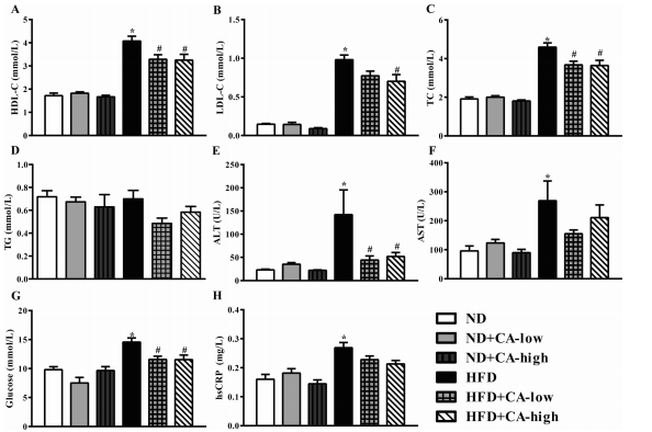 2.CA的補(bǔ)充影響hfd喂養(yǎng)小鼠的生化標(biāo)記物