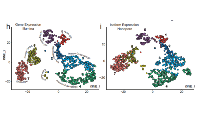 10×單細(xì)胞全長(zhǎng)轉(zhuǎn)錄組測(cè)序利用ONT長(zhǎng)讀長(zhǎng)實(shí)時(shí)測(cè)序技術(shù)結(jié)合10X技術(shù)可以直接讀取反轉(zhuǎn)錄的全長(zhǎng)cDNA,并進(jìn)行快速分析。這樣能夠有效的獲取高質(zhì)量的單個(gè)RNA分子的全部序列,準(zhǔn)確辨別二代測(cè)序無(wú)法識(shí)別的同源異構(gòu)體 (isoform)、同源基因、超家族基因或等位基因表達(dá)的轉(zhuǎn)錄本。