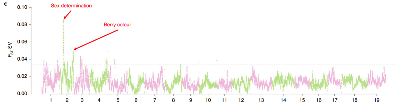 題目:The population genetics of structural variants in grapevine domestication, 葡萄馴化過程中基因組結(jié)構(gòu)變異的群體動態(tài).