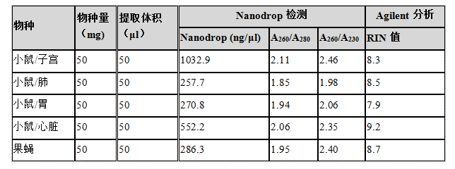 該試劑盒中的裂解液RLT Plus能迅速裂解細(xì)胞和滅活細(xì)胞RNA酶的活性;且基因組清除柱能有效分離上清液并去除gDNA。提取的RNA純度高、質(zhì)量穩(wěn)定。適用于從動(dòng)物組織、細(xì)胞樣本中快速提取總RNA。