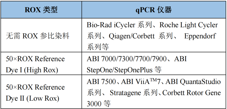 圖1:不同儀器所需ROX Reference Dye不同,請(qǐng)參考上述機(jī)型。